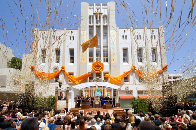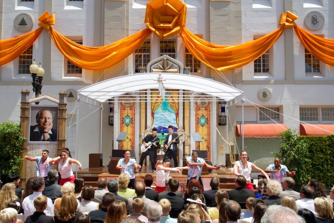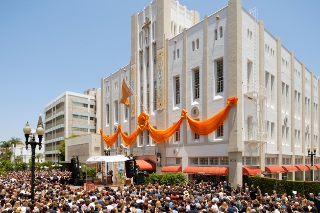 La nouvelle Eglise, au 505 North Sycamore Street, était auparavant un centre artistique majeur de Santa Ana, le Performing Arts and Event Center. Ce bâtiment de 4 500 mètres carrés date de 1931 : il s’agissait de la Loge maçonnique de Santa Ana. Il demeure l’un des plus beaux exemples d’architecture Art Déco d’Orange County.