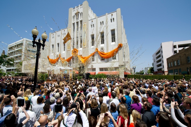 La nouvelle Eglise, au 505 North Sycamore Street, était auparavant un centre artistique majeur de Santa Ana, le Performing Arts and Event Center. Ce bâtiment de 4 500 mètres carrés date de 1931 : il s’agissait de la Loge maçonnique de Santa Ana. Il demeure l’un des plus beaux exemples d’architecture Art Déco d’Orange County.