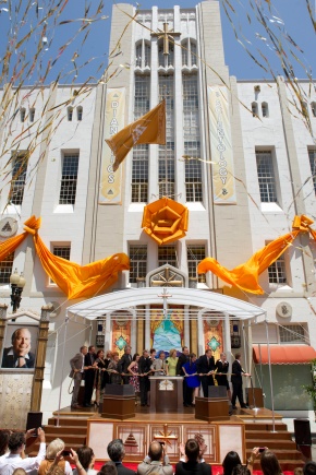 Maxine Schmidl, directeur de la Société de préservation historique de Santa Ana, a fait l’éloge du travail de restauration effectué par l’Église: « Nous sommes ravis que vous ayez mis tant de soin à restaurer ce lieu et à lui rendre son aspect d’origine. Ce faisant, vous avez manifesté un authentique respect de son importance historique pour Santa Ana. Je vous remercie pour votre respect et votre engagement. »